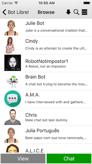 The Bot Libre iOS app has been updated with a large amount of new features. The Bot Libre iOS app allows you to create, train and share your own chat bot from your iPhone, iPod or iPad. The chat bots have artificial intelligence and are capable of learning through conversation. You can create your own bot, or chat with other peoples bots. There are thousands of bots on Bot Libre to talk to. Bot Libre for iOS 2.0 now includes:
